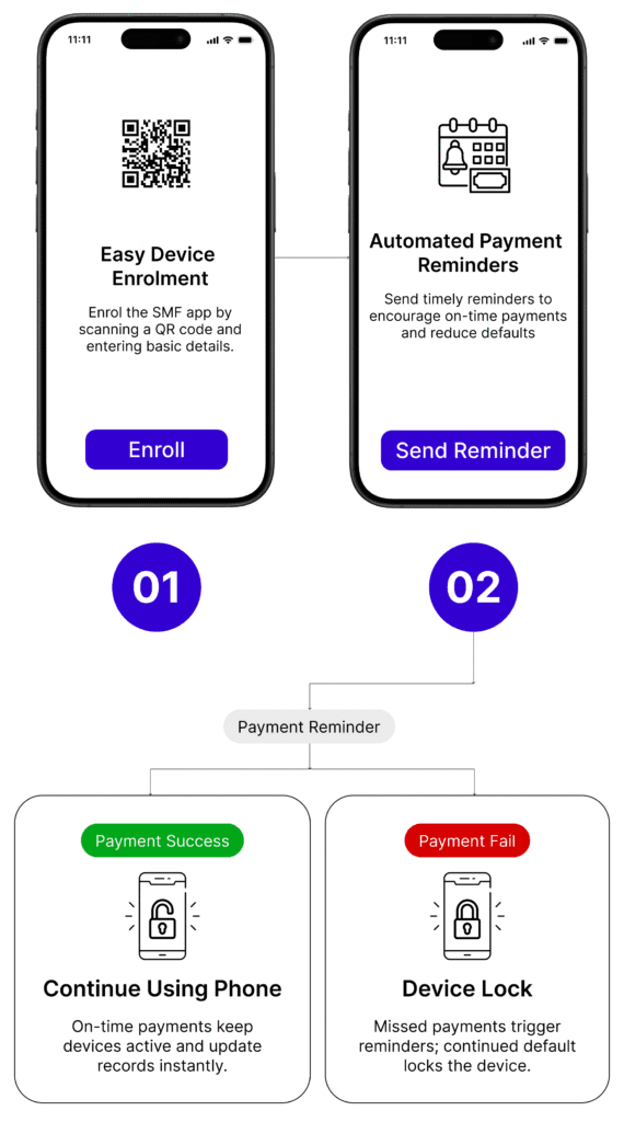 Smart Mobile Finance (SMF) is the smarter way to ensure repayment through timely reminders and remote locking of financed smartphones, so you stay in control until payments are complete.